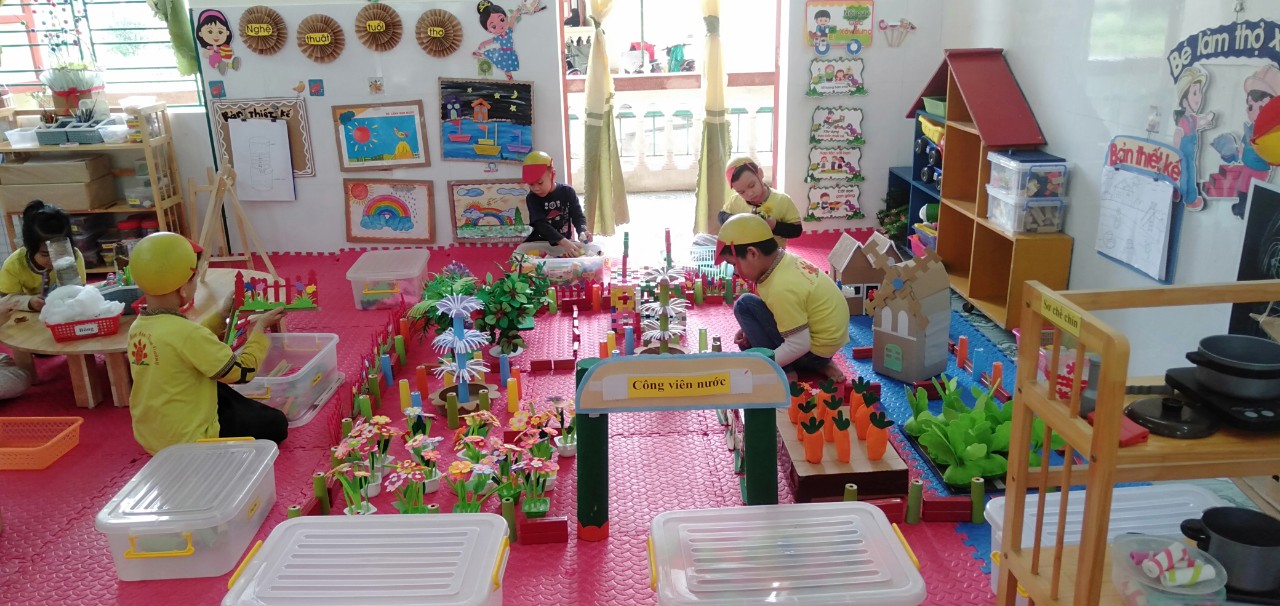 - Hôm trước cô thấy lớp mình ở góc xây các bác xây dựng đã xây dựng được công trình ngôi nhà của bé rất đẹp. Góc nấu ăn đã biết nấu nhiều món ăn ngon. Tuy nhiên cô thấy lớp mình khi chơi vẫn còn nói chuyện hơi to, và một số bạn vẫn chưa cất đồ chơi gọn gàng.
