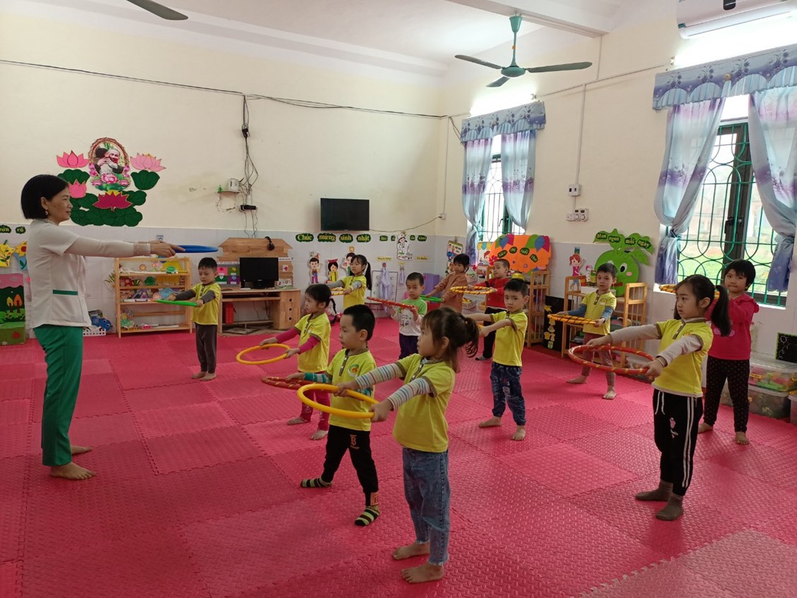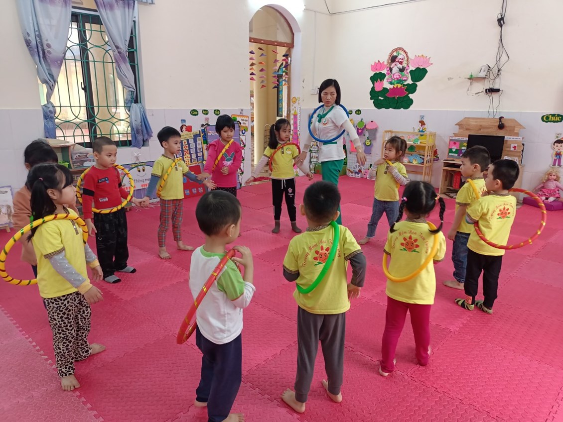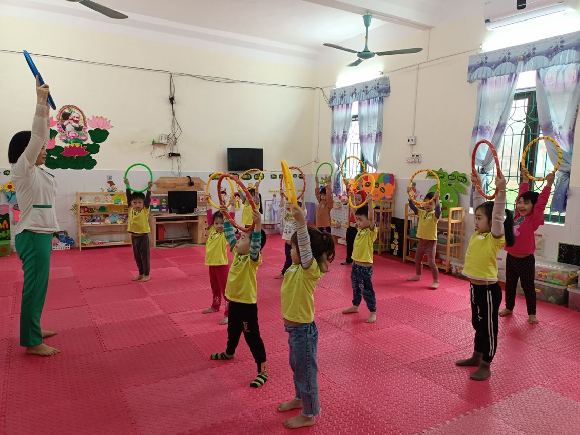 Mặc dù thời tiết mưa nhưng các bé lớp 4T3 vẫn tập thể dục buổi sáng cùng cô trong lớp học. Giờ thể dục sáng giúp trẻ vui vẻ, tràn đầy năng lượng cho cả một ngày học tập bên cô.
