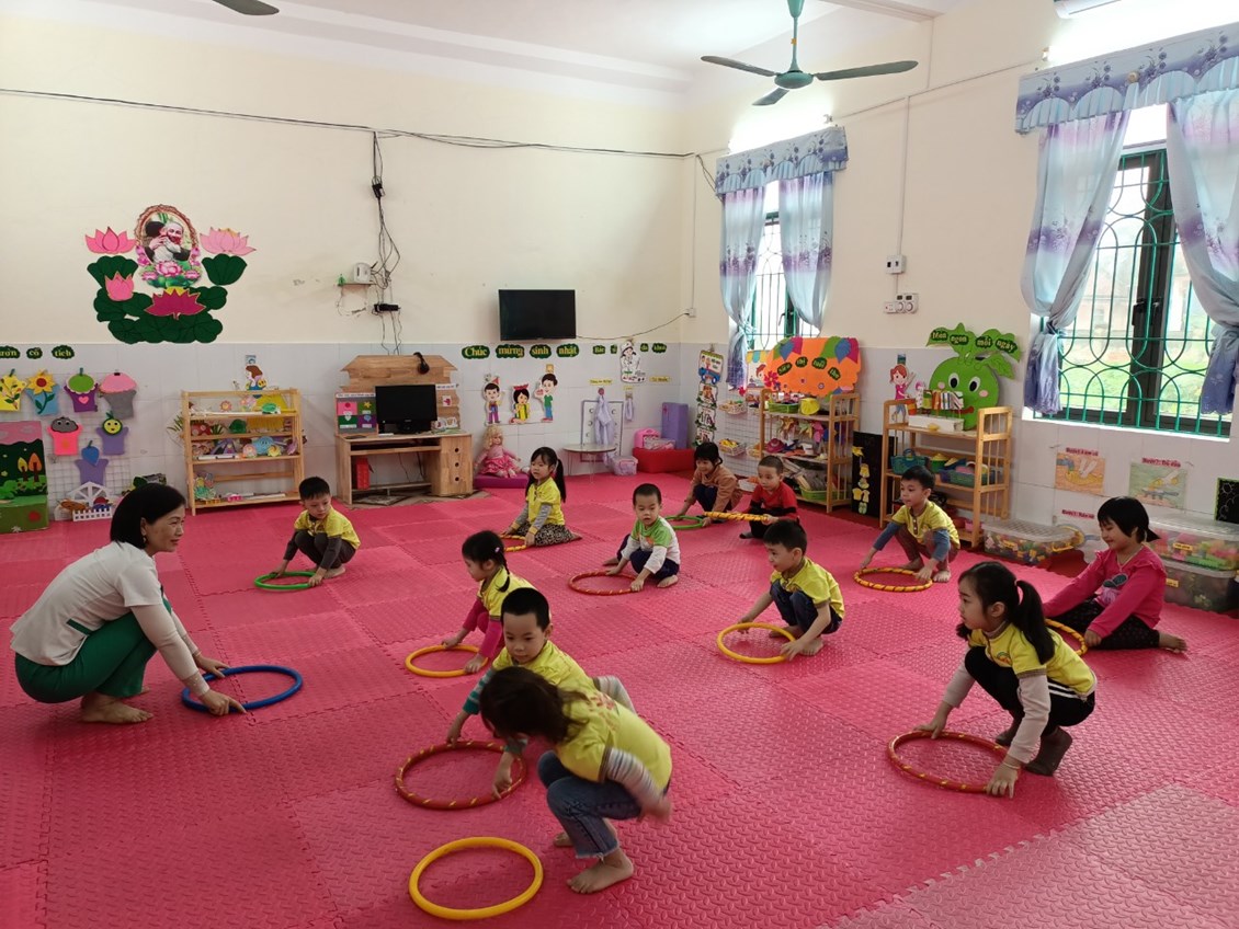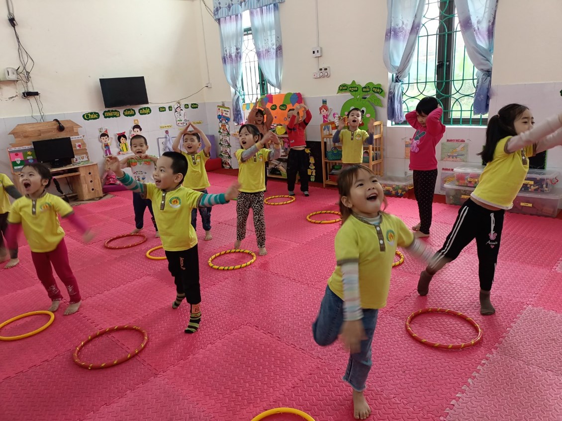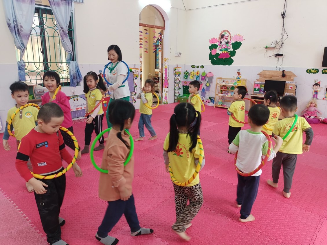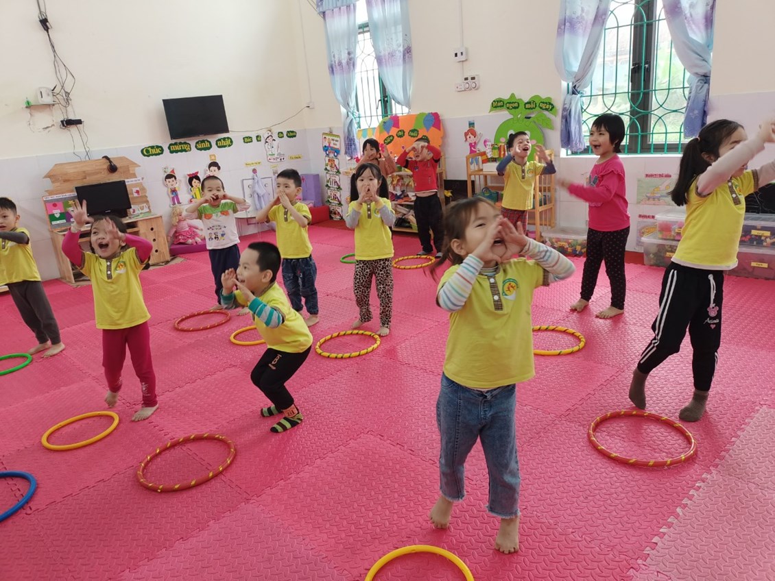 Mặc dù thời tiết mưa nhưng các bé lớp 4T3 vẫn tập thể dục buổi sáng cùng cô trong lớp học. Giờ thể dục sáng giúp trẻ vui vẻ, tràn đầy năng lượng cho cả một ngày học tập bên cô.