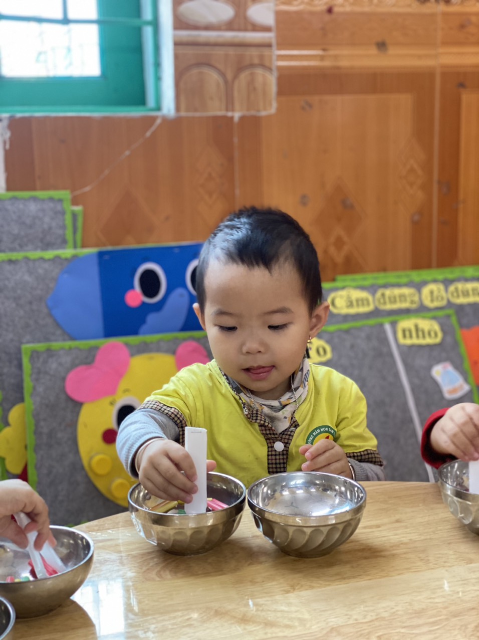Hôm nay, các bé lớp Nhà Trẻ 2 đã cùng tham gia vào một hoạt động thú vị và bổ ích: Gắp ống mút trong bát nước.