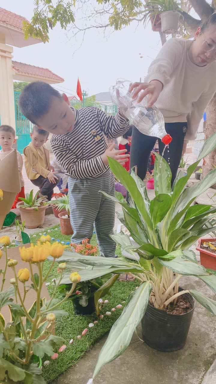 Hàng ngày bé tưới nước