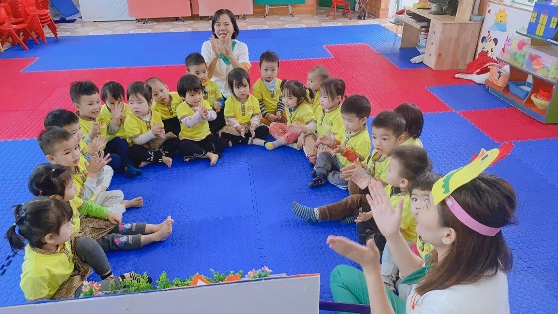 Các bé lớp nhà trẻ 1 vừa được tham gia hoạt động làm quen với văn học thông qua tiết học kể chuyện “Quả trứng”.